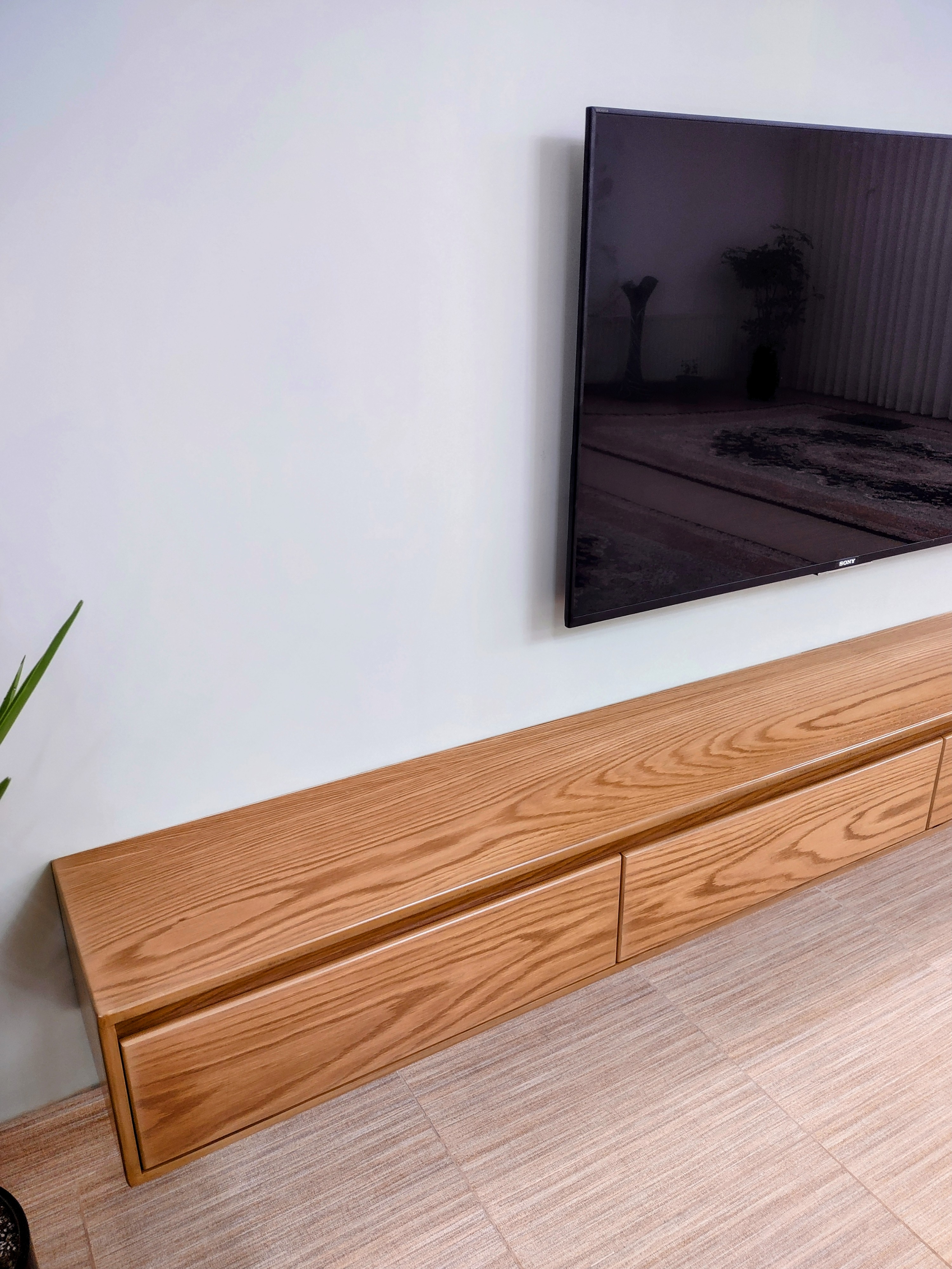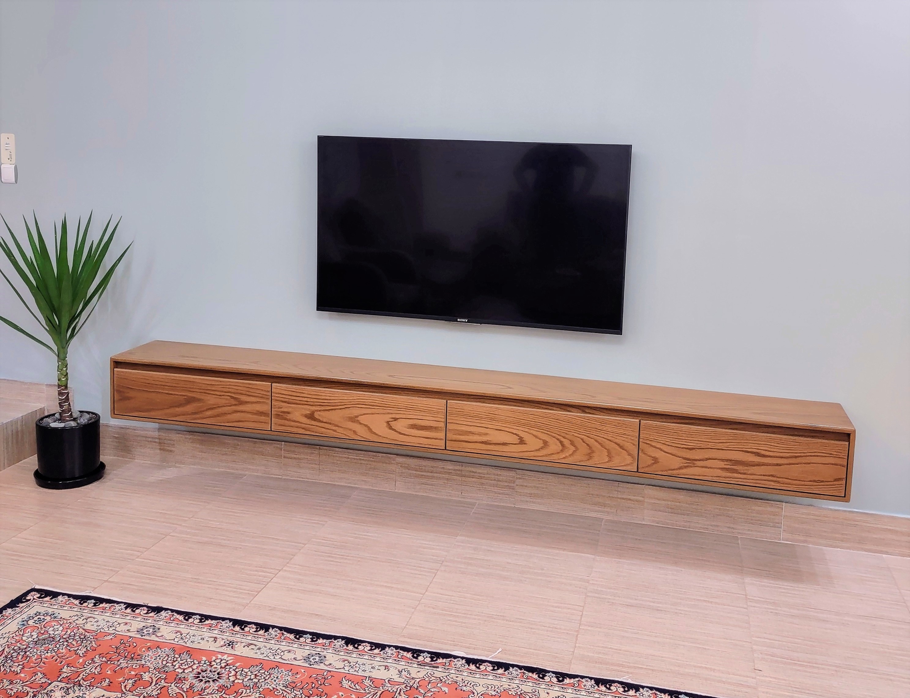 ✨ میز تلویزیون دیواری با روکش طبیعی بلوط ✨