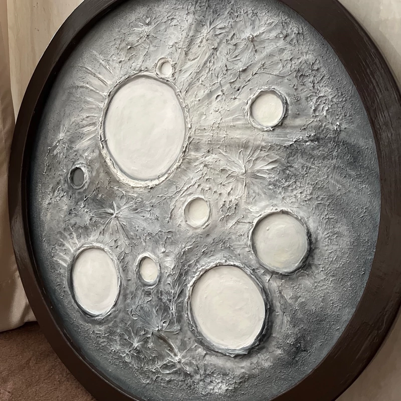 تابلو دکوراتیو ماه متریال:خمیر تکسچر و رنگ روغن قاب شده دارای آویز قطر 80