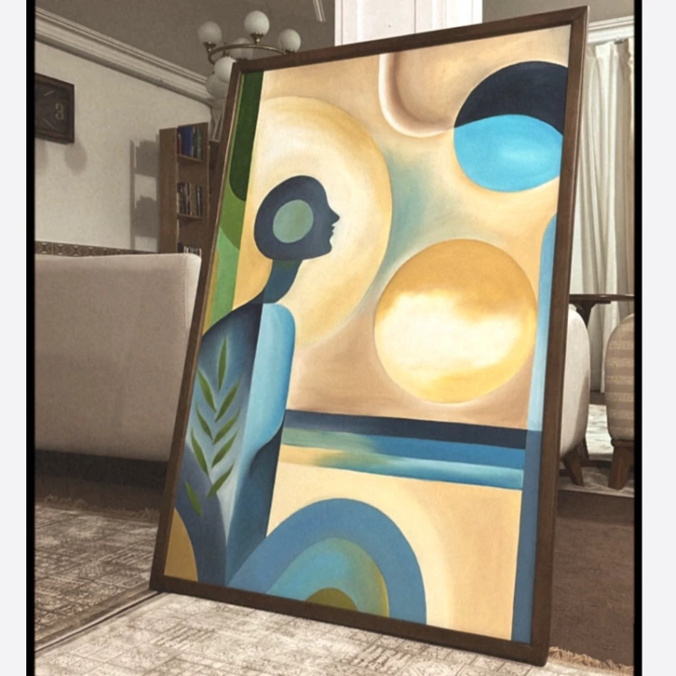 🎨✨ هر خط، هر رنگ، هر شکست نور… نجواهای خاموش آفرینشاند. در این آشوبِ شکل و سایه، نظمی نهفته است که تنها دلهای بیدار آن را میشنوند. اینجا، ستایش آفرینش است… این تابلو به سبک کوبیسم رسم شده. اندازه: 120*80