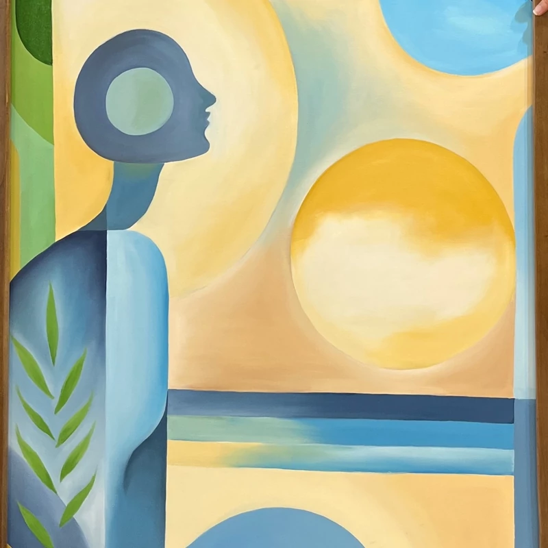 🎨✨ هر خط، هر رنگ، هر شکست نور… نجواهای خاموش آفرینشاند. در این آشوبِ شکل و سایه، نظمی نهفته است که تنها دلهای بیدار آن را میشنوند. اینجا، ستایش آفرینش است… این تابلو به سبک کوبیسم رسم شده. اندازه: 120*80